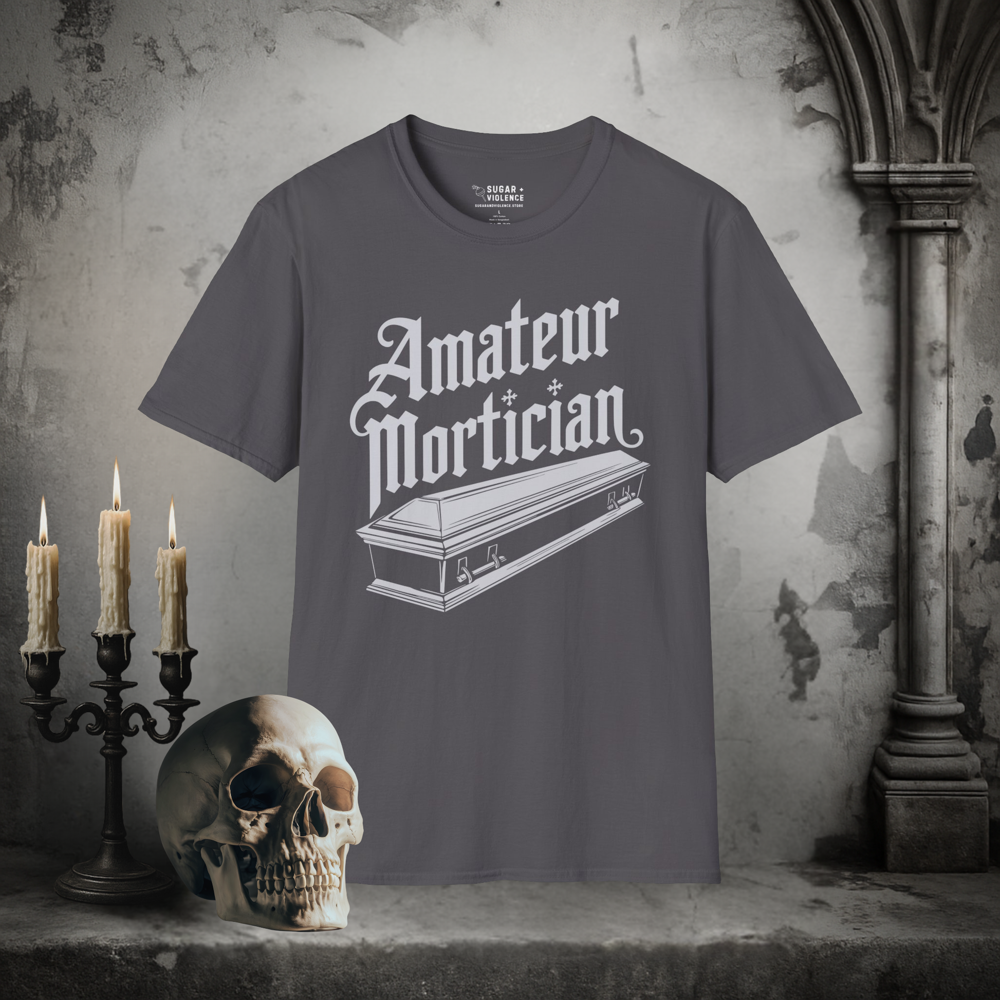 Amateur Mortician – Dark Humor Coffin Graphic Tee