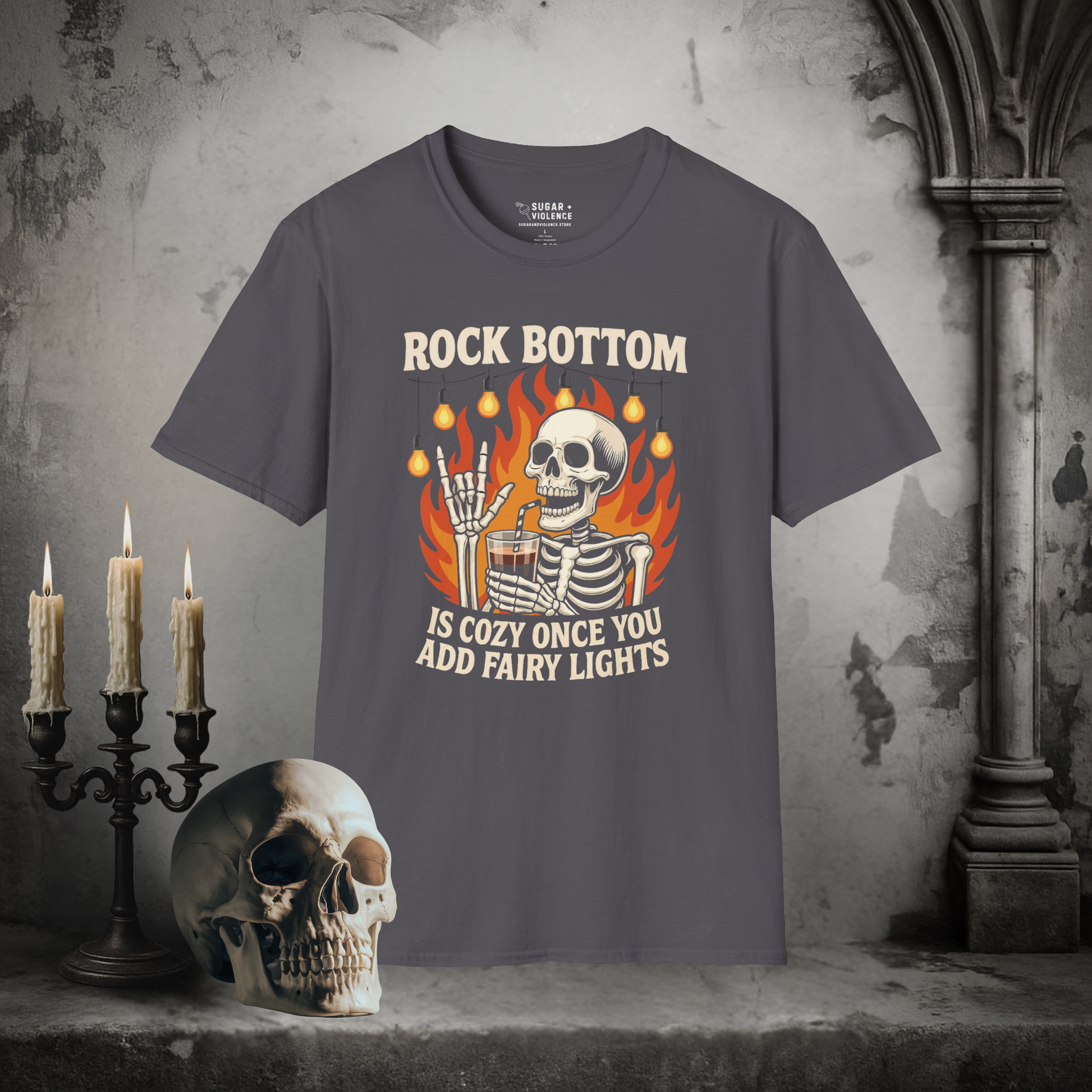 Rock Bottom Is Cozy Once You Add Fairy Lights – Goth Skeleton T-Shirt